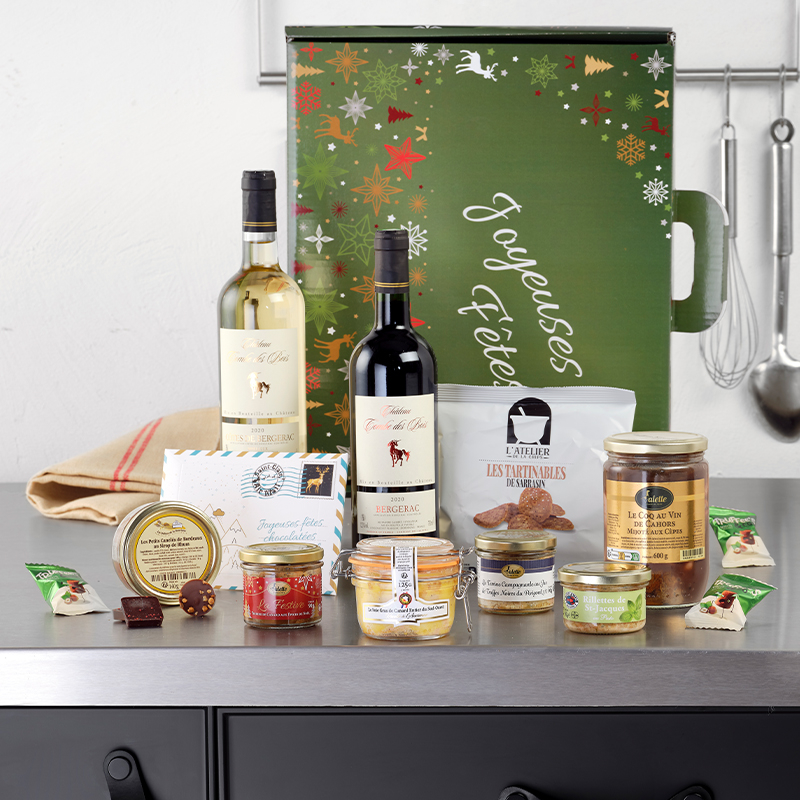 La Valisette carton décors Joyeuses Fêtes 2025 - dim 39.5*32.5*11.5cm contient :