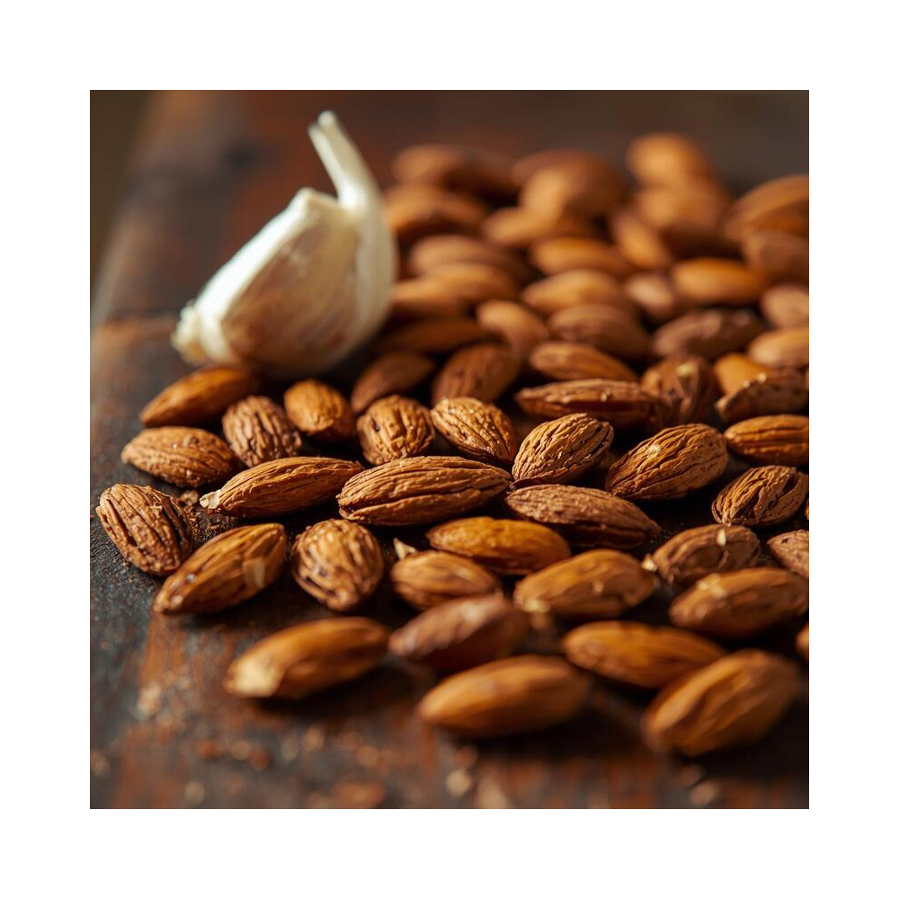 Des amandes croquantes relevées par la richesse aromatique de l’ail noir : une dégustation sophistiquée qui éveille les sens.