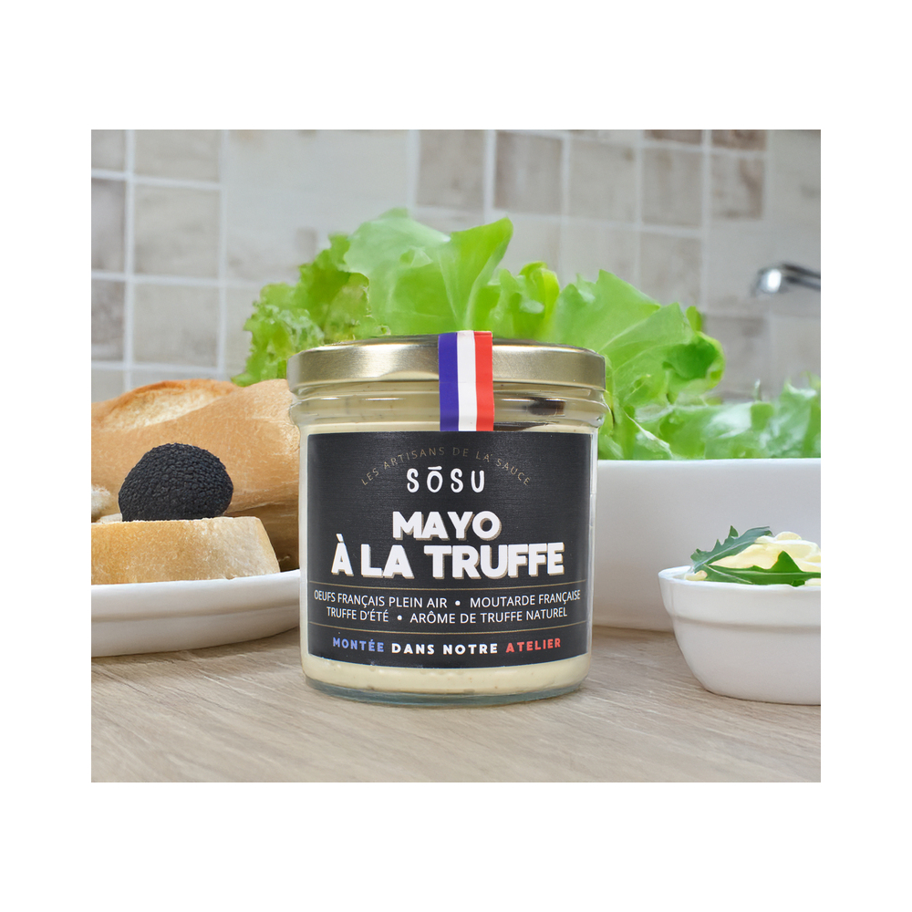 Huile de colza française, Moutarde de Dijon aux graines françaises (11,52%), Jaunes d'oeufs français PLEIN AIR (9,38%), Brisures de truffe