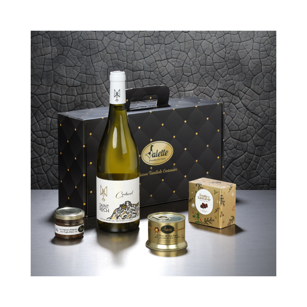 La valisette carton avec poignée décor Prestige PM (dim.33*18,5*9,5) : Fabrication Française 100% biodégradable,contient :