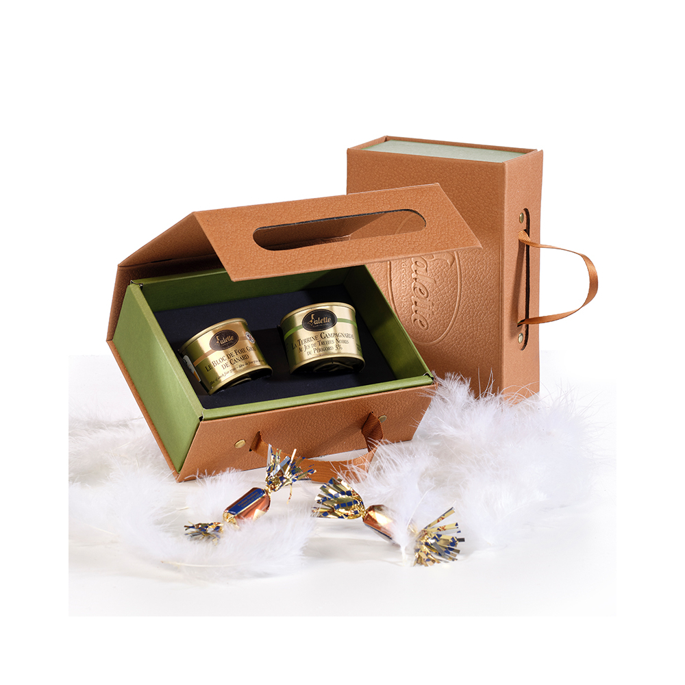 Coffret carton valisette texturé simili cuir - dim 19*13*6.6cm contient :