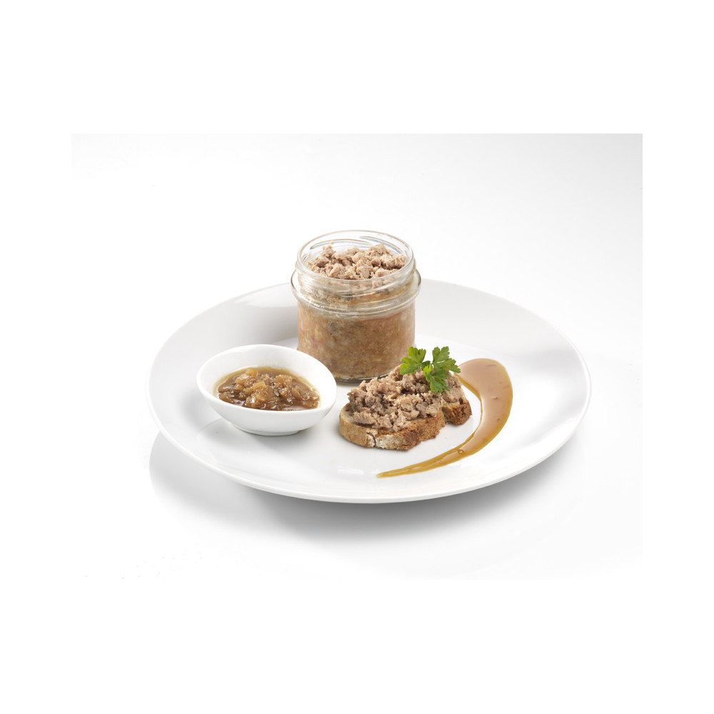 Une recette de rillettes de porc du Périgord élaborée dans la plus pure tradition et simplement assaisonnée de sel, de poivre et d’ail. Le tout agrémenté de raisin sec sultanine et d’une pointe de piment du Périgord. Une rillette douce et parfumée pour un apéritif convivial et authentique.