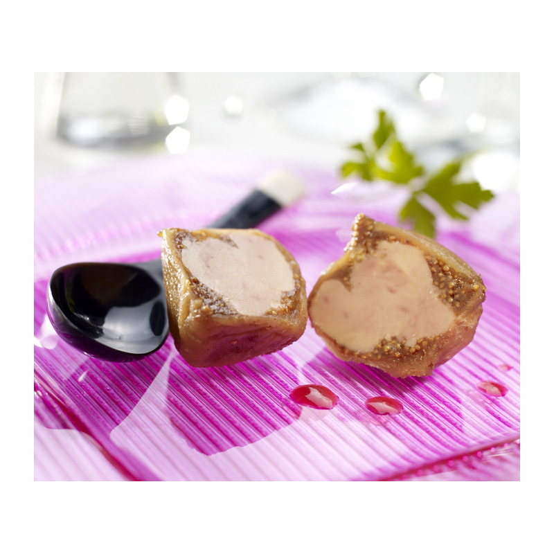 Des lobes de foie gras de canard avec en leur milieu un délicat mélange de truite fumée du Périgord simplement haché et relevé de maniguette autrement appelé « graine de Paradis ». Cette graine de Paradis à la saveur piquante et poivrée, ici associée au parfum fumé de la truite et au fondant du foie gras se révèle être une association exceptionnelle et surprenante.