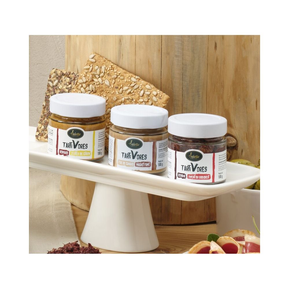 Un foie gras d’oie soigneusement éveiné, juste assaisonné, puis monté en façon mille-feuille entre deux fines couches de truffe noire du Périgord. Un produit sublime avec un visuel exceptionnel et un goût inimitable.